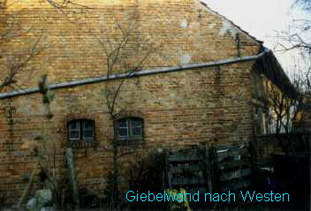 ![]() Die Giebelwand nach Westen war bauchig ausgebeult und an einigen Stellen zeigten sich Risse. Die Wand ist im Bereich des jetzigen Abstellraums erhalten, so auch die beiden Fenster. Diese Fenster wurden restauriert und neu verglast. |