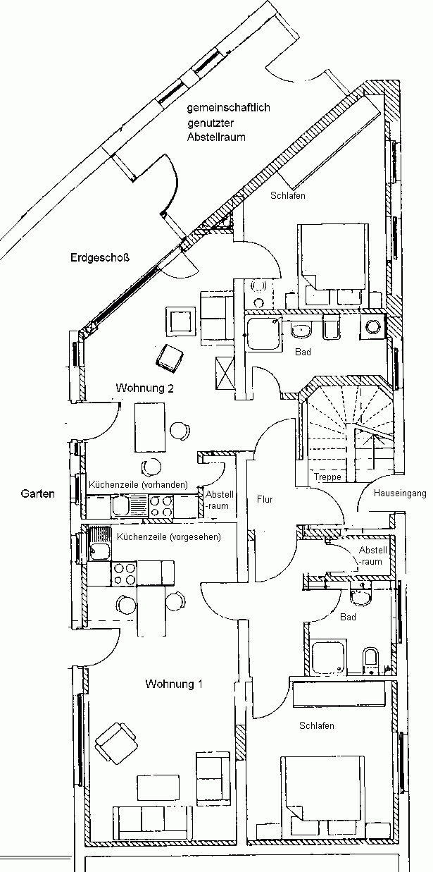 Der Plan der unteren Wohnung(en)