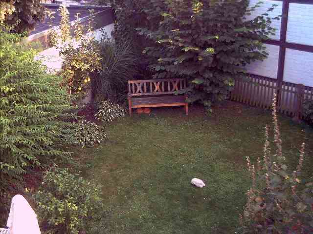 Das Bild zeigt den Blick von der Loggia in den Garten des Hinterhauses.