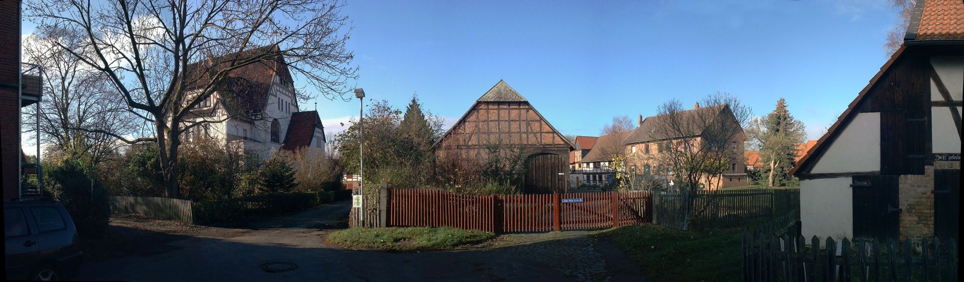 Panorama; ganz links die Balkone Alter Platz 1 - alle anderen Häuser stehen unter Denkmalschutz untere Bilder: weitere denkmalgeschützte Nachbaräuser